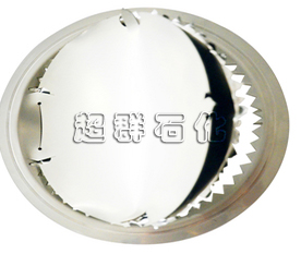 由反拱形金屬膜片和鋸齒壓桿構(gòu)成的組合式爆破片,凹面接觸介質(zhì)。爆破時,鋸齒壓桿失穩(wěn)使組合膜片翻轉(zhuǎn)被鋸齒沿周邊處剪開,泄放壓力,從而起到保護作用。
