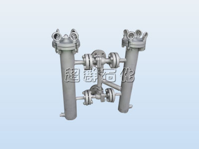 雙聯(lián)過濾器由兩個圓柱型筒體與連接管路組成,濾筒內(nèi)裝有不銹鋼濾網(wǎng)和濾網(wǎng)支撐籃;頂部裝有放氣閥,供過濾時(shí)排放濾器內(nèi)空氣作用、上蓋與濾筒連接采用法蘭式結(jié)構(gòu),三只可調(diào)節(jié)式支腳可使濾器平穩(wěn)放置在地面上。進(jìn)出料閥門采用三通球閥啟閉,耐壓耐溫,操作靈活方便,無料液泄漏更衛(wèi)生。工作原理是采用一個三通球閥和兩個球閥,將兩個單筒過濾器組裝在一個機(jī)座上,清洗過濾器無須停車,保證其連續(xù)工作。具有納污量大、濾速快、使用成本低、操作方便等特點(diǎn)。