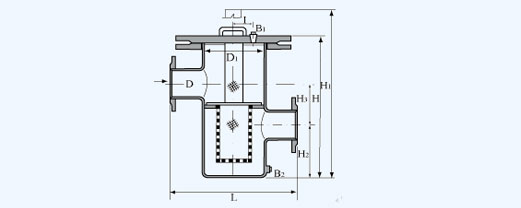 | DN | in | D1 | L | H | H1 | H2 | 有效過濾面積 m2 |